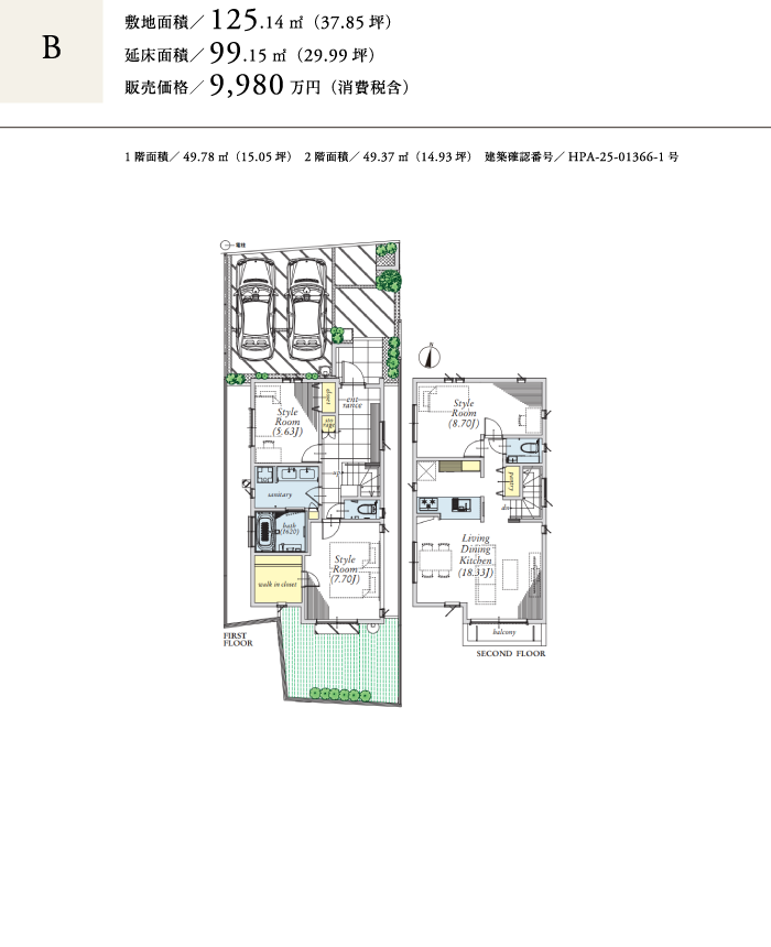 B号棟:125.14㎡(37.85坪)