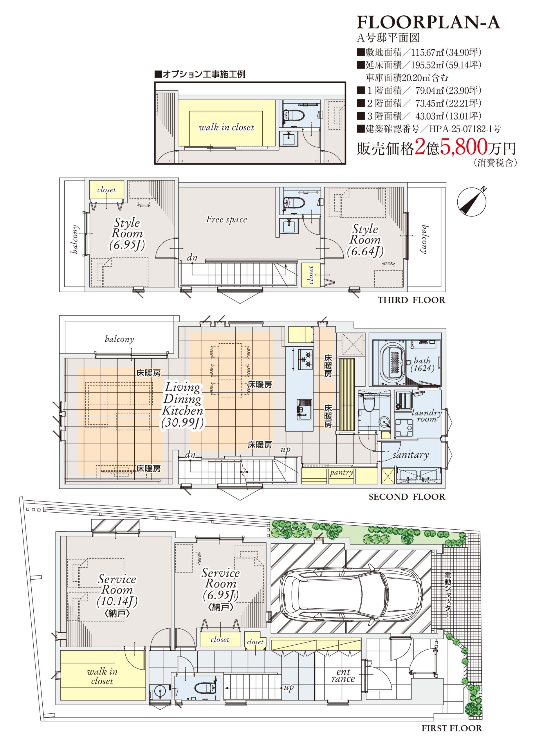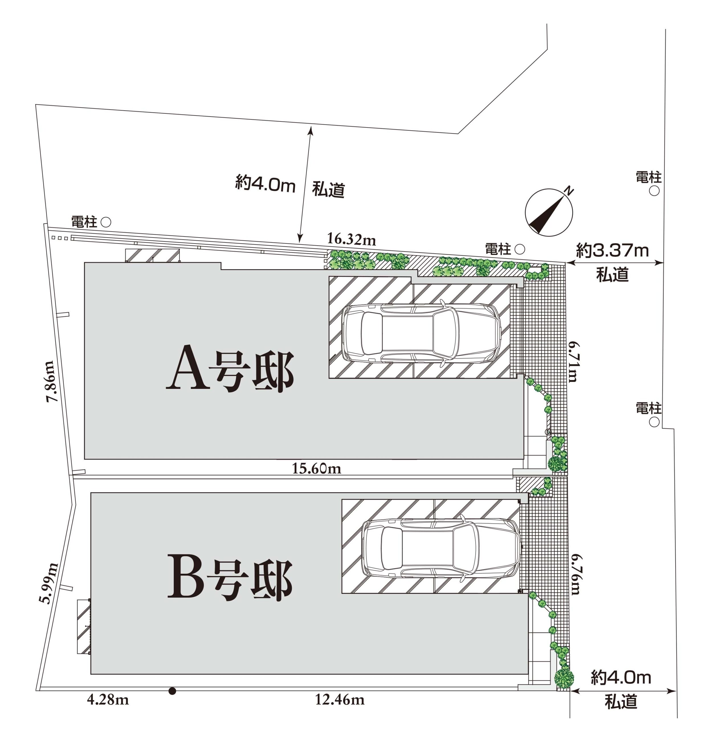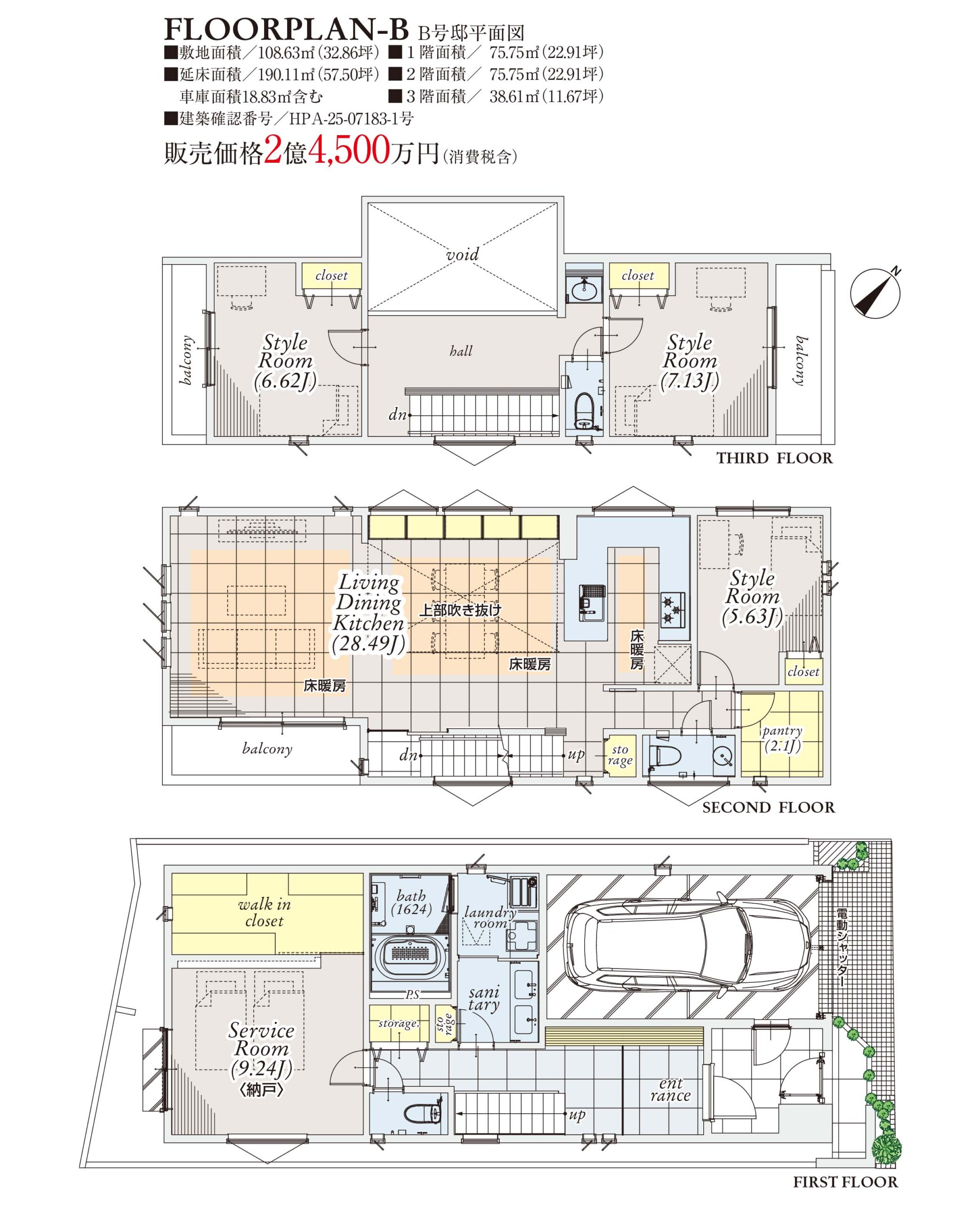 B号棟:190.11㎡(57.50坪)A号棟:車庫20.20㎡